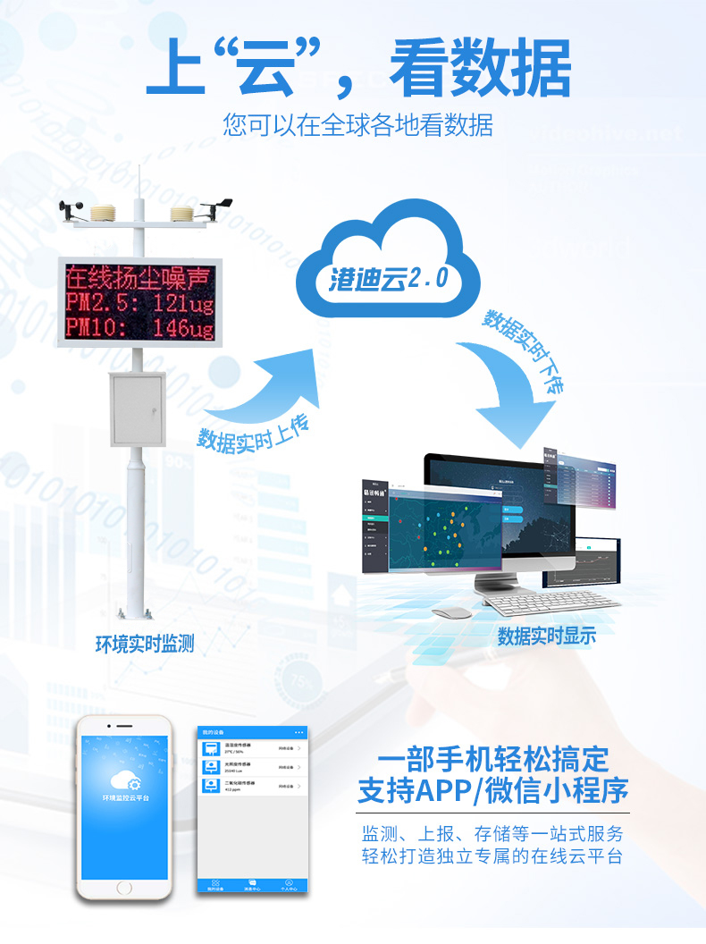 揚塵噪聲監測站是多功能參數戶外綜合環境監測的產品,可進行不同聲環境功能區揚塵重點監控區監測點的連續自動監測,比如PM2.5PM10、風速風向、溫濕度、噪音等數據的實時監測,通過GPRS/CDMA 移動公網、專線網絡傳輸數據。主要用于城市功能區監測、工業企業廠界監測、施工場界監測等方面。