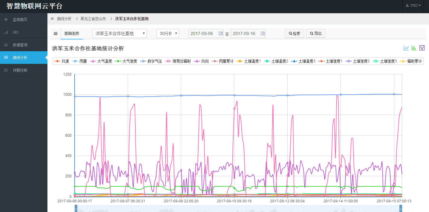 6、數據統計功能:支持單要素統計功能:可按年、季、月、日、小時、10分鐘或任意時間段進行單要素最大值、最小值、平均值的統計.