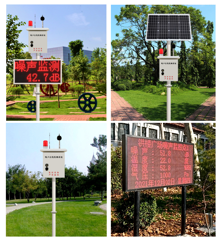 學校,醫(yī)院,機關單位,生活區(qū)噪聲監(jiān)測,用于室內室外環(huán)境噪聲監(jiān)測及顯示的裝置,采用全點陣LED發(fā)光模組面全點陣顯示 功能,適用于工廠、車間、公園、住宅小區(qū)等其它公共場所室內外環(huán)境噪聲的顯示。顯示內容為噪聲瞬時值A、平均Leq值及時間和流動文字等,可任意設定噪聲值,并超過設定值報警(或顏色變換)提示。